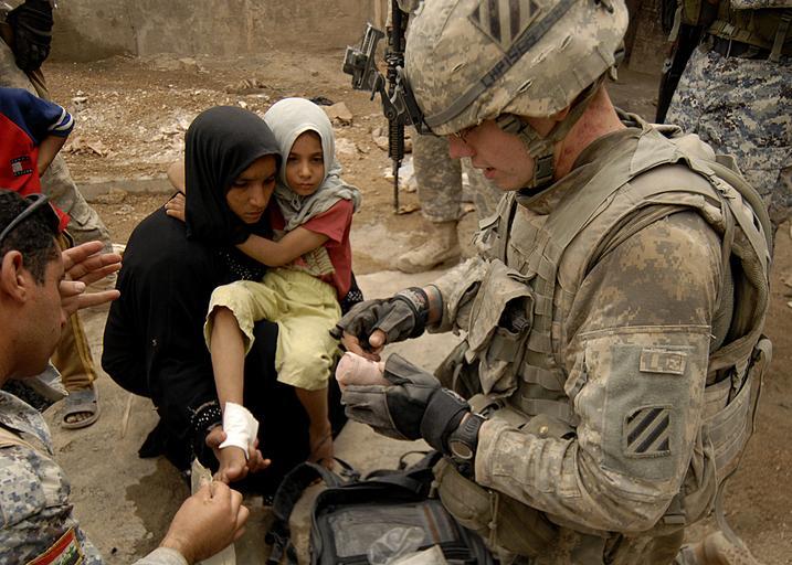 | Keywords: U.S. Soldiers pass out soccer balls DVIDS116285.jpg en U S Army Spc Matthew Petterson with 2nd Platoon Bravo Company 64th Armored Cavalry Regiment 4th Brigade 3rd Infantry Division provides medical attention to a hurt Iraqi girl in Risalah Baghdad on Sept 15 2008 2008-09-15 Petty Officer 2nd Class Joan Kretschmer https //www dvidshub net/image/116285 080915-N-+++++-032 2008-09-18 20 09 ABU TSHIR IQ PD-USGov-Military-Navy 3rd Infantry Division United States Images from DoD uploaded by Fæ |