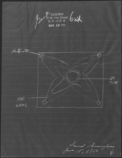 | Keywords: U.S. vs. Julius & Ethel Rosenberg and Martin Sobell, Government Exhibit 6, Lens Mold Sketch - NARA - 278751.tif Scope and content Government Exhibit 6 is a sketch of Lens Mold for the Atomic Bomb drawn by David Greenglas General notes 278751 Local identifier Department of Justice Office of the U S Attorney for the Southern Judicial District of New York 1870 - Most Recent <br /> Office of the Attorney General Office of the U S Attorney for the Southern Judicial District of New York 04/09/1814 - 1870 Predecessor NARA's Northeast Region New York City NRAAN 201 Varick Street New York NY 10014-4811 Record group Record Group 118 Records of U S Attorneys 1821 - 1994 Record group ARC 447 Selected Case Files compiled 1847 - 1986 Series ARC 278744 File unit Exhibits from the Julius and Ethel Rosenberg Case File 03/13/1951 - 03/27/1951 File unit ARC 278745 Variant control numbers NAIL Control Number NRAN-118-SDUSATTY-114868-7 9 yes Other versions <gallery> File U S _vs _Julius_ amp _Ethel_Rosenberg_and_Martin_Sobell _Government_Exhibit_6 _Lens_Mold_Sketch_-_NARA_-_278751 tif tif File U S _vs _Julius_ amp _Ethel_Rosenberg_and_Martin_Sobell _Government_Exhibit_6 _Lens_Mold_Sketch_-_NARA_-_278751 jpg jpg </gallery> NARA-cooperation PD-USGov Nuclear weapon schemas Espionage NARA TIF images with categorized JPGs |