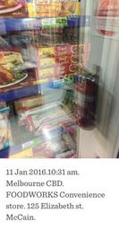 MAKE A MEME View Large Image The Fridge Lighting at FoodWorks convenience store, 125 Elizabeth st, Melbourne CBD, Australia is faulty. The fridge is dark and you cannot see your products inside clearly. You can’t buy what you cannot see clearly. This results in ...