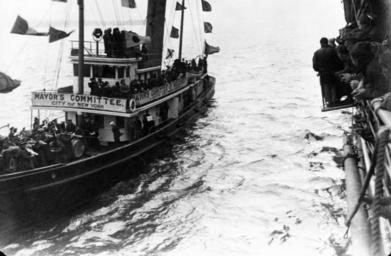 | Keywords: blackandwhite monochrome outdoor black and white UA_558_07_12: The Mayor of New York’s Welcoming Ship to the troopships returning to New York after the stop at Ponta Delgada, Azores, following their departure from Europe during World War I. Lorelei Rockwell Collection. Naval History and Heritage Command Photograph. (2016/02/20). UA_558_07_12: The Mayor of New York’s Welcoming Ship to the troopships returning to New York after the stop at Ponta Delgada, Azores, following their departure from Europe during World War I. Lorelei Rockwell Collection. Naval History and Heritage Command Photograph. (2016/02/20). |