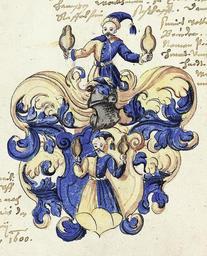 | Keywords: UBHD Cod Sal IX 58 093v Weckhman.jpg Wappen aus dem Wappenbuch des Hofpfalzgrafen Franz Rasso Gotthardt Entstanden in Süddeutschland Passau Universitätsbibliothek Heidelberg Cod Sal IX 58 <br />Wappen Fridericus weckhman von Staffelstein bewilligt 19/29 Mai 1600 http //digi ub uni-heidelberg de/diglit/salIX58 after 1600 1623 “1631 Franz Rasso Gotthardt PD-old-100 Wappenbuch der Hofpfalzgrafen Coats of arms of families of Germany - W Weckhman Party per pale azure and Or Counterchanging and countercolouring Or and azure Men in heraldry Bread in heraldry Men in crest Triple mountains Or Bad Staffelstein |