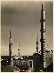 | Keywords: üç şerefeli mosque üçşerefelimosque üç şerefeli camii üçşerefelicamii sultan ii. murad sultaniimurad murad ii muradii ottoman architecture ottomanarchitecture osmanlı mimarisi osmanlımimarisi cami minare mosque minaret mimari architecture edirne salt araştırma saltaraştırma salt research saltresearch salt online saltonline outdoor monochrome skyline photo border www.archives.saltresearch.org/R/-?func=dbin-jump-full&amp... “1438-1447 yılları arasında Sultan II. Murad tarafından yaptırılan cami, Osmanlı mimarlığında erken dönemle klasik dönem arasında yer almaktaydı. Türk sanatında ilk kez ortaya çıkan plan şeması ile enine gelişen bir mekân anlayışında inşa edildi. Dört minaresinin biri üç, biri iki, ikisi ise birer şerefeli olup, baklavalı, şişhaneli, çubuklu ve burmalı motif üslupları ile bezendi. Üç şerefeli minaresindeki her üç şerefeye ayrı merdivenlerden çıkılan ilk minare tarzıdır ve bu tarz camiye adını vermiştir. Hafif sivri kemerli revakları ile şadırvanlı avlusu vardır.” Kaynak: Engin Özendes, “Osmanlı’nın İkinci Başkenti Edirne”, Yapı-Endüstri Merkezi (YEM) Yayınları, 1999, s. 20 Edirne Üç Şerefeli Camii SALT Araştırma - Ali Saim Ülgen Arşivi www.archives.saltresearch.org/R/-?func=dbin-jump-full&amp... “1438-1447 yılları arasında Sultan II. Murad tarafından yaptırılan cami, Osmanlı mimarlığında erken dönemle klasik dönem arasında yer almaktaydı. Türk sanatında ilk kez ortaya çıkan plan şeması ile enine gelişen bir mekân anlayışında inşa edildi. Dört minaresinin biri üç, biri iki, ikisi ise birer şerefeli olup, baklavalı, şişhaneli, çubuklu ve burmalı motif üslupları ile bezendi. Üç şerefeli minaresindeki her üç şerefeye ayrı merdivenlerden çıkılan ilk minare tarzıdır ve bu tarz camiye adını vermiştir. Hafif sivri kemerli revakları ile şadırvanlı avlusu vardır.” Kaynak: Engin Özendes, “Osmanlı’nın İkinci Başkenti Edirne”, Yapı-Endüstri Merkezi (YEM) Yayınları, 1999, s. 20 Edirne Üç Şerefeli Camii SALT Araştırma - Ali Saim Ülgen Arşivi |