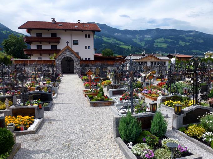 Keywords: uderns austria buildings village cemetery flowers plants mountains church architecture nature outside summer spring
