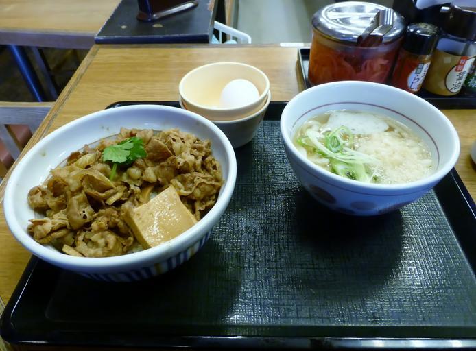 Keywords: Udon,egg&gyusukidon of Nakau.JPG ja なか卯のうどんと卵と牛すき丼を撮影 2014-03-11 11 05 38 own Tokumeigakarinoaoshima cc-zero Uploaded with UploadWizard Udon Nakau