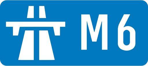 Keywords: UK-Motorway-M6.svg Motorway badge for the M6 motorway Own 2007-05-06 User Max Naylor British motorway plaques M6 motorway 6 number