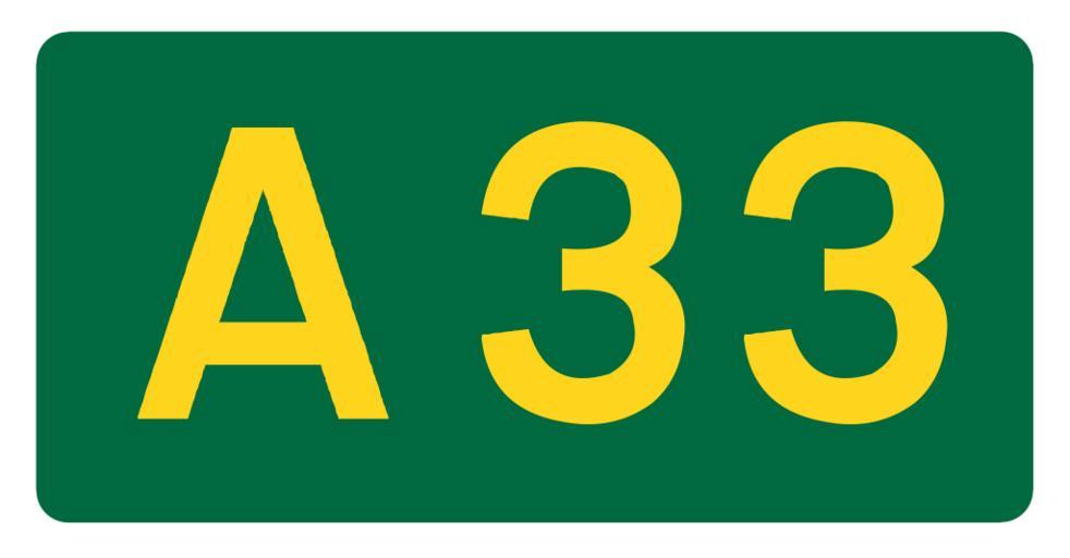 Keywords: UK road A33.svg en UK road number patch own Mauls Diagrams of route signs of the United Kingdom 33 number