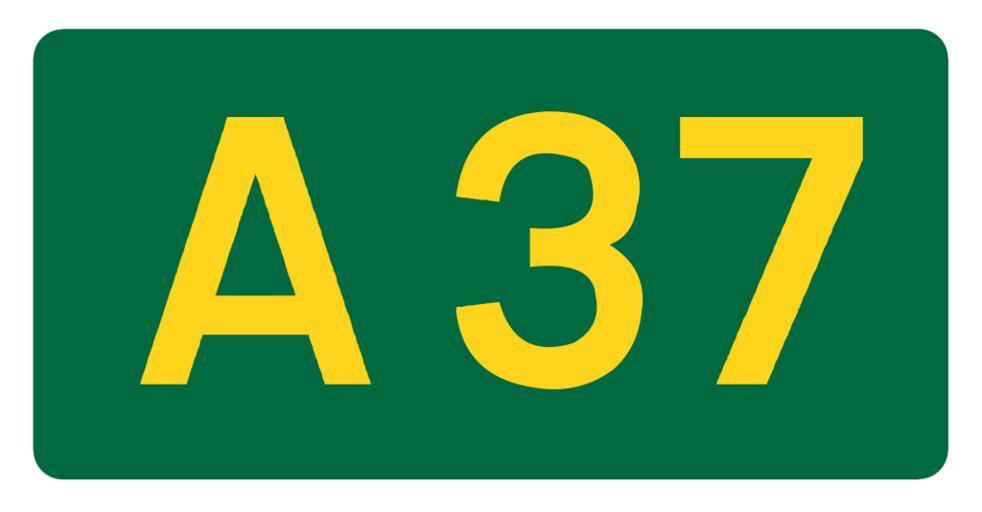 Keywords: UK road A37.svg en UK road number patch own Mauls Diagrams of route signs of the United Kingdom 37 number