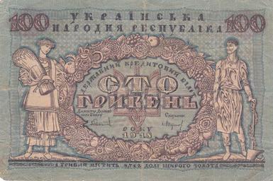 Keywords: Ukrainian 100 hryvnia's note of the People's repub.jlic of Ukraine (1918) front side.jpg Ukrainian People's Republic which existed 1918 “1921 Scanned bank note of the Ukrainian People's Republic 1918 Creator Heorhiy Narbut 1918 <gallery> File Ukrainian 100 hryvnia's note of the People's republic of Ukraine 1918 back side jpg Reverse </gallery> PD-UA-exempt banknotes PD-old-auto-1923 1920 Banknotes of Ukraine 1918 0100 Banknotes by Heorhiy Narbut Blue banknotes Money of Ukrainian People's Republic Banknotes with a face value of 100 |