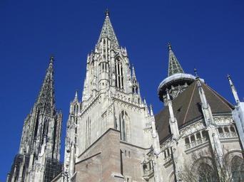 Keywords: ulm cathedral building church gothic architecture steeple tower ulm sky blue