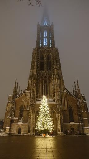 Keywords: ulm cathedral christmas tree illuminated christmas time night ulm gothic church