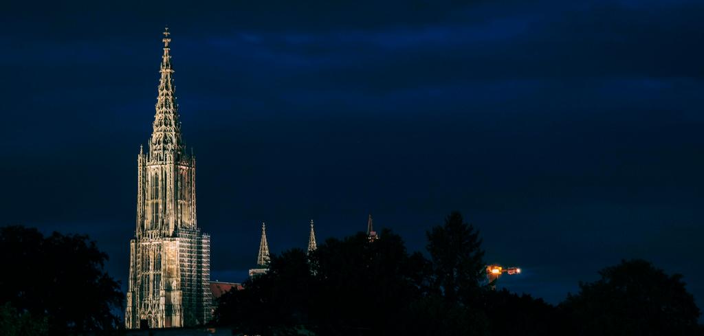 Keywords: ulm cathedral ulm münster night dom tower steeple