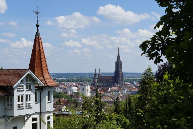 Keywords: ulm cathedral ulm view city view villa building city tower steeple church sky outlook scenery architecture wilhelmsburg michel mountain summer