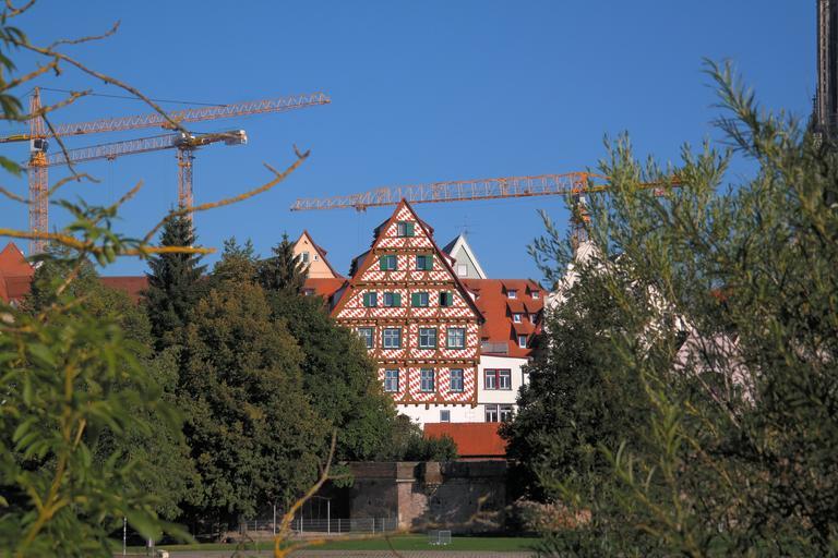Keywords: ulm city view fachwerkhäuser historically historic old town old town construction work baukran rehabilitation cranes