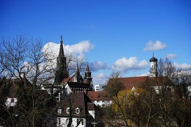 Keywords: ulm ulm cathedral city view steeple sky roofs sun act city panorama spire holy trinity church onion dome tower turrets onion helm great roof building architecture münster church city dom cathedral high