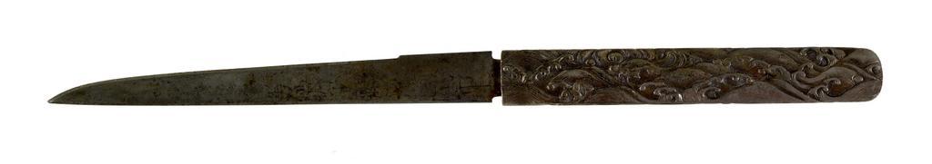 | Keywords: Umetada Narikazu - Kozuka with Waves - Walters 5111523.jpg The waves carved in relief on this silver kozuka repeat the same motif used on other sword furniture in the suite This is part of a mounted set between 1629 1700 Edo silver cm 21 2 accession number 51 1152 3 32051 William T / Henry Walters Collection Baltimore date and mode of acquisition unknown Walters Art Museum Henry Walters Acquired by William T or Henry Walters Signature Umetada Narikazu place of origin Edo present-day Tokyo Japan Walters Art Museum license Tosogu Japanese sword fittings in the Walters Art Museum Umetada Narikazu Media contributed by the Walters Art Museum needs category review |