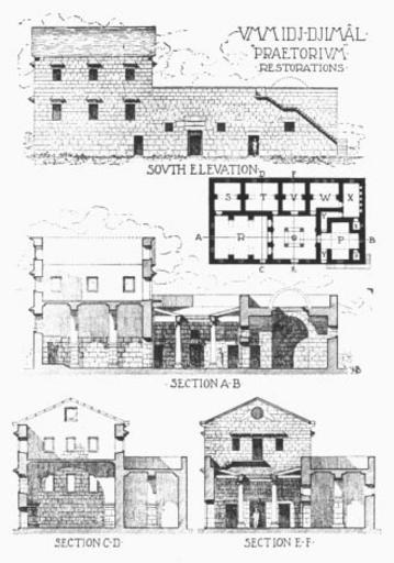 | Keywords: Umm Idj-Djimal, the Practorium, plan and sections.jpg en Umm Idj-Djimal the Practorium plan and sections date Arthur Segal The Temple at Musmiyeh in Relation to the Religious Architecture in Roman Palestine author other versions PD-Art Praetorium at Umm al Jamal |