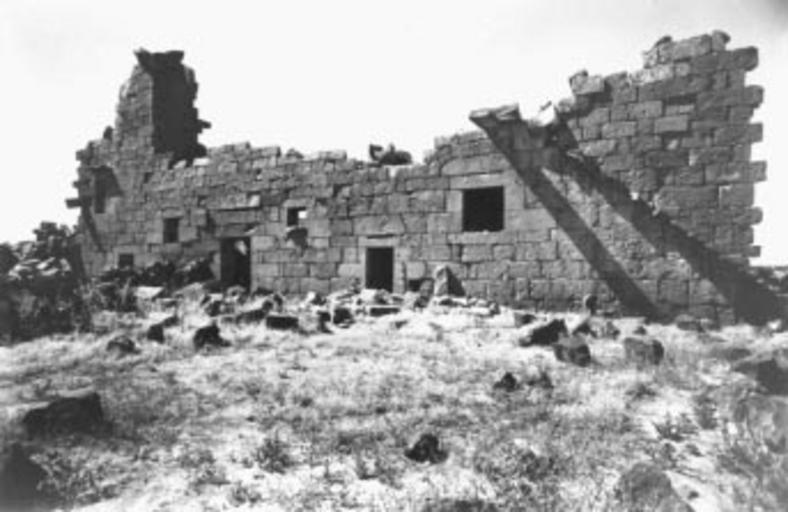 | Keywords: Umm Idj-Djimal, the Praetorium, general view of the entrance wall.jpg en Umm Idj-Djimal the Praetorium general view of the entrance wall date Arthur Segal The Temple at Musmiyeh in Relation to the Religious Architecture in Roman Palestine author other versions PD-Art Praetorium at Umm al Jamal |