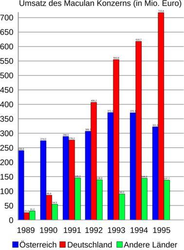 Keywords: Umsatz Maculan.svg Inkscape de Umsatz des Maculan Konzerns von 1989 bis 1995 en Turnover of the Maculan group from 1989 to 1995 Maculan Alexander Mein Fall Traum und Alptraum eines Unternehmers Wien 1997 Page 178 Raw Data 2009-04-20 Roland Lehner Economic bar charts