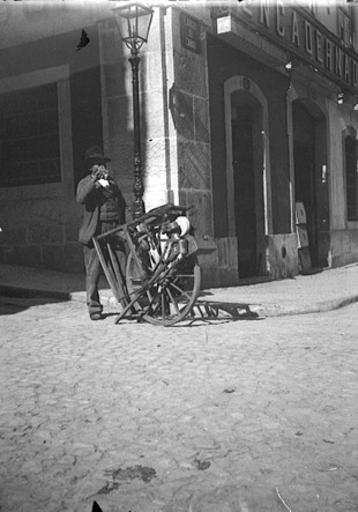| Keywords: Un remouleur, sifflant (Portugal).jpg Information_field GEH record <blockquote> Chusseau-Flaviens Ch French active 1890s-1910s TITLE ON OBJECT Portugal un remouleur ca 1900-1919 negative gelatin on glass 12 x 9 cm Gift of Kodak Pathe 75 0112 1257 NON-GEH NUMBER 145 INSCRIPTION Portugal un remouleur NOTES Catalogued 6/87 JBB SUBJECT occupation knife grinder </blockquote> Institution George Eastman House http //www geh org/ar/chus/portugal/m197501121257_ful html http //www geh org/ar/strip03/m197501121257 jpg between 1905-10-27 circa 1915 01 š 🛈 Charles Chusseau-Flaviens see below Un remouleur attendant Portugal jpg Information_field 1st uploaded as the 24 632 159<sup>th</sup> file in Wikimedia Commons Lic PD-old Black and white photographs of Portugal Photographs of Portugal by Charles Chusseau-Flaviens Street lights in Portugal Photographs in the George Eastman House Collection Gas lamps Panpipes Unidentified locations in Portugal Men with hats Streetcorners Sharpening tools Cutlers Portugal in the 1900s Portugal in the 1910s ImageNote 1 152 10 25 37 310 443 2 Largo do Carmo ImageNoteEnd 1 |