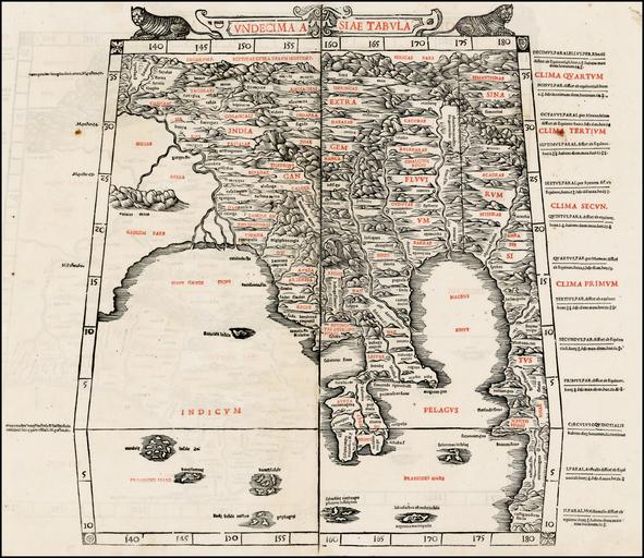 | Keywords: Undecima Asiae Tabula.jpg In undecia tabula India extra gãgẽ fl Sinarum Regio en The 11th Asian Map Undecima Asiae Tabula depicting India beyond the Ganges and the land of the Sinae from Bernardus Sylvanius's edition of Ptolemy's Geography 1511 https //www raremaps com/gallery/detail/29254/Undecima_Asiae_Tabula_India_Southeast_Asia/Sylvanus html Rare Maps Ptolemy other versions <gallery> File Claudii Ptholemaei Alexandrini Liber geographiae cum tabulis et uniuersali figura - et cum additione locorum quae a recentioribus reperta sunt diligenti cura emendatus et impressus 1511 14759569736 jpg File Undecima Asiae tabula 7537888692 jpg </gallery> PD-old-70-1923 1511 maps Ptolemy's 11th Asian Map 1511 Maps in Latin 1511 Ptolemy Asia 11 |
