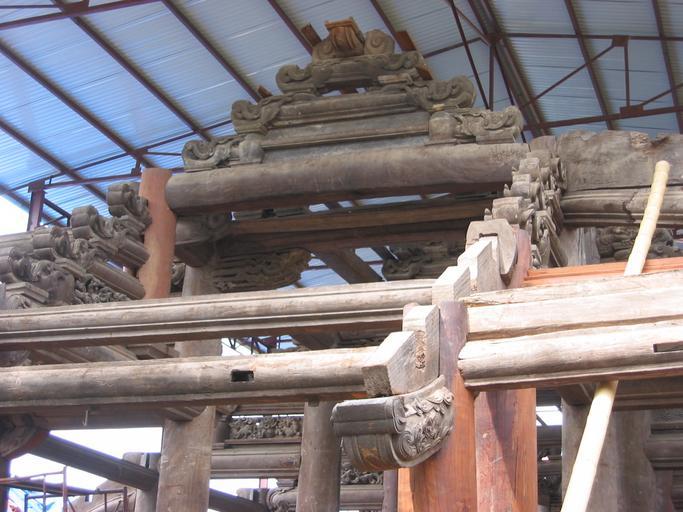 Keywords: Underrestoration3.JPG Đình Bảng Phần mái đang trong quá trình trùng tu Bảng communal house the roof under restoration Own 2007-09-02 Binh Giang Pictures by Binh Giang Bang Communal House