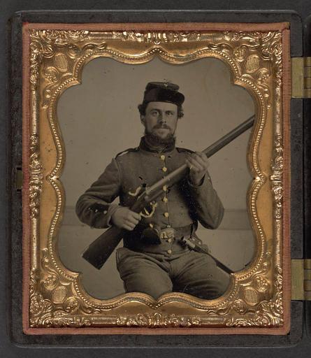 | Keywords: library of congress libraryofcongress dc:identifier=http://hdl.loc.gov/loc.pnp/ppmsca.26859 dc:identifier=httphdllocgovlocpnpppmsca26859 xmlns:dc=http://purl.org/dc/elements/1.1/ xmlns:dc=httppurlorgdcelements11 mirror image mirrorimage confederate american civil war soldier military man fighter picture frame people photo border [Unidentified soldier in Union uniform with musket and bayonet] [between 1861 and 1865] 1 photograph : sixth-plate tintype, hand-colored ; 9.5 x 8.3 cm (case) Notes: Title devised by Library staff. Case: no. Berg 3-183. Photograph shows uniform with upside down belt. Gift; Tom Liljenquist; 2010; (DLC/PP-2010:105). Subjects: Soldiers--Union--1860-1870. Military uniforms--Union--1860-1870. Rifles--1860-1870. Bayonets--1860-1870. United States--History--Civil War, 1861-1865--Military personnel--Union. Format: Portrait photographs--1860-1870. Tintypes--Hand-colored--1860-1870. Rights Info: No known restrictions on publication. Repository: Library of Congress, Prints and Photographs Division, Washington, D.C. 20540 USA, hdl.loc.gov/loc.pnp/pp.print Part Of: Ambrotype/Tintype filing series (Library of Congress) (DLC) 2010650518 Liljenquist Family collection (Library of Congress) (DLC) 2010650519 More information about this collection is available at hdl.loc.gov/loc.pnp/pp.lilj Persistent URL: hdl.loc.gov/loc.pnp/ppmsca.26859 Call Number: AMB/TIN no. 2008 [Unidentified soldier in Union uniform with musket and bayonet] [between 1861 and 1865] 1 photograph : sixth-plate tintype, hand-colored ; 9.5 x 8.3 cm (case) Notes: Title devised by Library staff. Case: no. Berg 3-183. Photograph shows uniform with upside down belt. Gift; Tom Liljenquist; 2010; (DLC/PP-2010:105). Subjects: Soldiers--Union--1860-1870. Military uniforms--Union--1860-1870. Rifles--1860-1870. Bayonets--1860-1870. United States--History--Civil War, 1861-1865--Military personnel--Union. Format: Portrait photographs--1860-1870. Tintypes--Hand-colored--1860-1870. Rights Info: No known restrictions on publication. Repository: Library of Congress, Prints and Photographs Division, Washington, D.C. 20540 USA, hdl.loc.gov/loc.pnp/pp.print Part Of: Ambrotype/Tintype filing series (Library of Congress) (DLC) 2010650518 Liljenquist Family collection (Library of Congress) (DLC) 2010650519 More information about this collection is available at hdl.loc.gov/loc.pnp/pp.lilj Persistent URL: hdl.loc.gov/loc.pnp/ppmsca.26859 Call Number: AMB/TIN no. 2008 |
