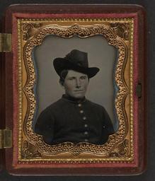 Keywords: library of congress libraryofcongress dc:identifier=http://hdl.loc.gov/loc.pnp/ppmsca.27435 dc:identifier=httphdllocgovlocpnpppmsca27435 xmlns:dc=http://purl.org/dc/elements/1.1/ xmlns:dc=httppurlorgdcelements11 u.s. civil war uscivilwar american civil war americancivilwar the civil war thecivilwar civil war civilwar war between the states warbetweenthestates united states of america unitedstatesofamerica u.s.a. usa the union theunion union the north thenorth yankee yankees soldier people picture frame photo border [Unidentified soldier in Union uniform and slouch hat] [between 1861 and 1865] 1 photograph : ninth-plate tintype, hand-colored ; 7.6 x 6.3 cm (case) Notes: Title devised by Library staff. Case: Berg, no. 3-285. Gift; Tom Liljenquist; 2010; (DLC/PP-2010:105). Subjects: United States.--Army.--People--1860-1870. Soldiers--Union--1860-1870. Military uniforms--Union--1860-1870. United States--History--Civil War, 1861-1865--Military personnel--Union. Format: Portrait photographs--1860-1870. Tintypes--Hand-colored--1860-1870. Rights Info: No known restrictions on publication. Repository: Library of Congress, Prints and Photographs Division, Washington, D.C. 20540 USA, hdl.loc.gov/loc.pnp/pp.print Part Of: Ambrotype/Tintype filing series (Library of Congress) (DLC) 2010650518 Liljenquist Family collection (Library of Congress) (DLC) 2010650519 More information about this collection is available at hdl.loc.gov/loc.pnp/pp.lilj Persistent URL: hdl.loc.gov/loc.pnp/ppmsca.27435 Call Number: AMB/TIN no. 2564 [Unidentified soldier in Union uniform and slouch hat] [between 1861 and 1865] 1 photograph : ninth-plate tintype, hand-colored ; 7.6 x 6.3 cm (case) Notes: Title devised by Library staff. Case: Berg, no. 3-285. Gift; Tom Liljenquist; 2010; (DLC/PP-2010:105). Subjects: United States.--Army.--People--1860-1870. Soldiers--Union--1860-1870. Military uniforms--Union--1860-1870. United States--History--Civil War, 1861-1865--Military personnel--Union. Format: Portrait photographs--1860-1870. Tintypes--Hand-colored--1860-1870. Rights Info: No known restrictions on publication. Repository: Library of Congress, Prints and Photographs Division, Washington, D.C. 20540 USA, hdl.loc.gov/loc.pnp/pp.print Part Of: Ambrotype/Tintype filing series (Library of Congress) (DLC) 2010650518 Liljenquist Family collection (Library of Congress) (DLC) 2010650519 More information about this collection is available at hdl.loc.gov/loc.pnp/pp.lilj Persistent URL: hdl.loc.gov/loc.pnp/ppmsca.27435 Call Number: AMB/TIN no. 2564 |