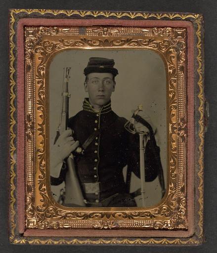 Keywords: library of congress libraryofcongress dc:identifier=http://hdl.loc.gov/loc.pnp/ppmsca.26969 dc:identifier=httphdllocgovlocpnpppmsca26969 xmlns:dc=http://purl.org/dc/elements/1.1/ xmlns:dc=httppurlorgdcelements11 soldiersnpm picture frame people photo border [Unidentified soldier in Union cavalry uniform with percussion cap pistol carbine, attached stock, and cavalry saber] [between 1861 and 1865] 1 photograph : ninth-plate ambrotype, hand-colored ; 7.4 x 6.1 cm (case) Notes: Title devised by Library staff. Case: Leather scroll. Gift; Tom Liljenquist; 2010; (DLC/PP-2010:105). Subjects: United States.--Army--People--1860-1870. Soldiers--Union--1860-1870. Military uniforms--Union--1860-1870. Handguns--1860-1870. Daggers & swords--1860-1870. United States--History--Civil War, 1861-1865--Military personnel--Union. Format: Portrait photographs--1860-1870. Ambrotypes--Hand-colored--1860-1870. Rights Info: No known restrictions on publication. Repository: Library of Congress, Prints and Photographs Division, Washington, D.C. 20540 USA, hdl.loc.gov/loc.pnp/pp.print Part Of: Ambrotype/Tintype filing series (Library of Congress) (DLC) 2010650518 Liljenquist Family collection (Library of Congress) (DLC) 2010650519 More information about this collection is available at hdl.loc.gov/loc.pnp/pp.lilj Persistent URL: hdl.loc.gov/loc.pnp/ppmsca.26969 Call Number: AMB/TIN no. 2117 [Unidentified soldier in Union cavalry uniform with percussion cap pistol carbine, attached stock, and cavalry saber] [between 1861 and 1865] 1 photograph : ninth-plate ambrotype, hand-colored ; 7.4 x 6.1 cm (case) Notes: Title devised by Library staff. Case: Leather scroll. Gift; Tom Liljenquist; 2010; (DLC/PP-2010:105). Subjects: United States.--Army--People--1860-1870. Soldiers--Union--1860-1870. Military uniforms--Union--1860-1870. Handguns--1860-1870. Daggers & swords--1860-1870. United States--History--Civil War, 1861-1865--Military personnel--Union. Format: Portrait photographs--1860-1870. Ambrotypes--Hand-colored--1860-1870. Rights Info: No known restrictions on publication. Repository: Library of Congress, Prints and Photographs Division, Washington, D.C. 20540 USA, hdl.loc.gov/loc.pnp/pp.print Part Of: Ambrotype/Tintype filing series (Library of Congress) (DLC) 2010650518 Liljenquist Family collection (Library of Congress) (DLC) 2010650519 More information about this collection is available at hdl.loc.gov/loc.pnp/pp.lilj Persistent URL: hdl.loc.gov/loc.pnp/ppmsca.26969 Call Number: AMB/TIN no. 2117 |
