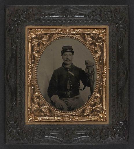 Keywords: library of congress libraryofcongress dc:identifier=http://hdl.loc.gov/loc.pnp/ppmsca.27523 dc:identifier=httphdllocgovlocpnpppmsca27523 xmlns:dc=http://purl.org/dc/elements/1.1/ xmlns:dc=httppurlorgdcelements11 u.s. civil war uscivilwar american civil war americancivilwar the civil war thecivilwar civil war civilwar war between the states warbetweenthestates united states of america unitedstatesofamerica u.s.a. usa the union theunion union the north thenorth yankee yankees soldier cavalry cavalryman gauntlets gauntlet sabre saber sword gun pistol revolver picture frame people photo border [Unidentified soldier in Union uniform with gauntlets, holstered revolver, and U.S. Model 1860 Light Cavalry saber] [between 1861 and 1865] 1 photograph : sixth-plate tintype, hand-colored ; 12.4 x 11.2 cm (frame) Notes: Title devised by Library staff. Case: Berg, no. 7-42. Gift; Tom Liljenquist; 2010; (DLC/PP-2010:105). Subjects: United States.--Army--People--1860-1870. Soldiers--Union--1860-1870. Military uniforms--Union--1860-1870. Handguns--1860-1870. Daggers & swords--1860-1870. United States--History--Civil War, 1861-1865--Military personnel--Union. Format: Portrait photographs--1860-1870. Tintypes--Hand-colored--1860-1870. Rights Info: No known restrictions on publication. Repository: Library of Congress, Prints and Photographs Division, Washington, D.C. 20540 USA, hdl.loc.gov/loc.pnp/pp.print Part Of: Ambrotype/Tintype filing series (Library of Congress) (DLC) 2010650518 Liljenquist Family collection (Library of Congress) (DLC) 2010650519 More information about this collection is available at hdl.loc.gov/loc.pnp/pp.lilj Persistent URL: hdl.loc.gov/loc.pnp/ppmsca.27523 Call Number: AMB/TIN no. 5014 [Unidentified soldier in Union uniform with gauntlets, holstered revolver, and U.S. Model 1860 Light Cavalry saber] [between 1861 and 1865] 1 photograph : sixth-plate tintype, hand-colored ; 12.4 x 11.2 cm (frame) Notes: Title devised by Library staff. Case: Berg, no. 7-42. Gift; Tom Liljenquist; 2010; (DLC/PP-2010:105). Subjects: United States.--Army--People--1860-1870. Soldiers--Union--1860-1870. Military uniforms--Union--1860-1870. Handguns--1860-1870. Daggers & swords--1860-1870. United States--History--Civil War, 1861-1865--Military personnel--Union. Format: Portrait photographs--1860-1870. Tintypes--Hand-colored--1860-1870. Rights Info: No known restrictions on publication. Repository: Library of Congress, Prints and Photographs Division, Washington, D.C. 20540 USA, hdl.loc.gov/loc.pnp/pp.print Part Of: Ambrotype/Tintype filing series (Library of Congress) (DLC) 2010650518 Liljenquist Family collection (Library of Congress) (DLC) 2010650519 More information about this collection is available at hdl.loc.gov/loc.pnp/pp.lilj Persistent URL: hdl.loc.gov/loc.pnp/ppmsca.27523 Call Number: AMB/TIN no. 5014 |