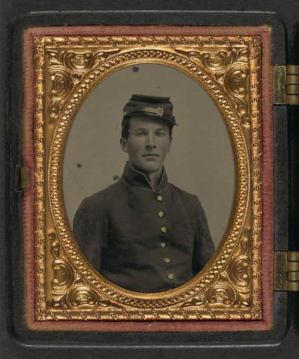 Keywords: library of congress libraryofcongress dc:identifier=http://hdl.loc.gov/loc.pnp/ppmsca.26970 dc:identifier=httphdllocgovlocpnpppmsca26970 xmlns:dc=http://purl.org/dc/elements/1.1/ xmlns:dc=httppurlorgdcelements11 u.s. civil war uscivilwar american civil war americancivilwar the civil war thecivilwar civil war civilwar war between the states warbetweenthestates united states of america unitedstatesofamerica u.s.a. usa the union theunion union the north thenorth yankee yankees soldier soldiersnpm people picture frame photo border [Unidentified soldier in Union uniform with forage cap] [between 1861 and 1865] 1 photograph : ninth-plate ambrotype, hand-colored ; 7.6 x 6.4 cm (case) Notes: Title devised by Library staff. Case: Berg, no. 2-103. Gift; Tom Liljenquist; 2010; (DLC/PP-2010:105). Purchased from: Lee's Headquarters, Fredricksburg, Virginia, 2004. Subjects: United States.--Army--People--1860-1870. Soldiers--Union--1860-1870. Military uniforms--Union--1860-1870. United States--History--Civil War, 1861-1865--Military personnel--Union. Format: Portrait photographs--1860-1870. Ambrotypes--Hand-colored--1860-1870. Rights Info: No known restrictions on publication. Repository: Library of Congress, Prints and Photographs Division, Washington, D.C. 20540 USA, hdl.loc.gov/loc.pnp/pp.print Part Of: Ambrotype/Tintype filing series (Library of Congress) (DLC) 2010650518 Liljenquist Family collection (Library of Congress) (DLC) 2010650519 More information about this collection is available at hdl.loc.gov/loc.pnp/pp.lilj Persistent URL: hdl.loc.gov/loc.pnp/ppmsca.26970 Call Number: AMB/TIN no. 2118 [Unidentified soldier in Union uniform with forage cap] [between 1861 and 1865] 1 photograph : ninth-plate ambrotype, hand-colored ; 7.6 x 6.4 cm (case) Notes: Title devised by Library staff. Case: Berg, no. 2-103. Gift; Tom Liljenquist; 2010; (DLC/PP-2010:105). Purchased from: Lee's Headquarters, Fredricksburg, Virginia, 2004. Subjects: United States.--Army--People--1860-1870. Soldiers--Union--1860-1870. Military uniforms--Union--1860-1870. United States--History--Civil War, 1861-1865--Military personnel--Union. Format: Portrait photographs--1860-1870. Ambrotypes--Hand-colored--1860-1870. Rights Info: No known restrictions on publication. Repository: Library of Congress, Prints and Photographs Division, Washington, D.C. 20540 USA, hdl.loc.gov/loc.pnp/pp.print Part Of: Ambrotype/Tintype filing series (Library of Congress) (DLC) 2010650518 Liljenquist Family collection (Library of Congress) (DLC) 2010650519 More information about this collection is available at hdl.loc.gov/loc.pnp/pp.lilj Persistent URL: hdl.loc.gov/loc.pnp/ppmsca.26970 Call Number: AMB/TIN no. 2118 |