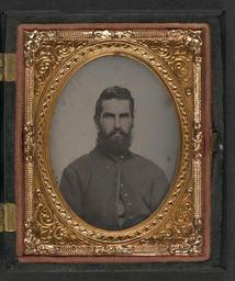Keywords: library of congress libraryofcongress dc:identifier=http://hdl.loc.gov/loc.pnp/ppmsca.26967 dc:identifier=httphdllocgovlocpnpppmsca26967 xmlns:dc=http://purl.org/dc/elements/1.1/ xmlns:dc=httppurlorgdcelements11 picture frame people photo border indoor [Unidentified soldier in Union uniform] [between 1861 and 1865] 1 photograph : ninth-plate ambrotype, hand-colored ; 7.5 x 6.5 cm (case) Notes: Title devised by Library staff. Case: Berg, no. 1-144. Gift; Tom Liljenquist; 2010; (DLC/PP-2010:105). Subjects: United States.--Army--People--1860-1870. Soldiers--Union--1860-1870. Military uniforms--Union--1860-1870. United States--History--Civil War, 1861-1865--Military personnel--Union. Format: Portrait photographs--1860-1870. Ambrotypes--Hand-colored--1860-1870. Rights Info: No known restrictions on publication. Repository: Library of Congress, Prints and Photographs Division, Washington, D.C. 20540 USA, hdl.loc.gov/loc.pnp/pp.print Part Of: Ambrotype/Tintype filing series (Library of Congress) (DLC) 2010650518 Liljenquist Family collection (Library of Congress) (DLC) 2010650519 More information about this collection is available at hdl.loc.gov/loc.pnp/pp.lilj Persistent URL: hdl.loc.gov/loc.pnp/ppmsca.26967 Call Number: AMB/TIN no. 2115 [Unidentified soldier in Union uniform] [between 1861 and 1865] 1 photograph : ninth-plate ambrotype, hand-colored ; 7.5 x 6.5 cm (case) Notes: Title devised by Library staff. Case: Berg, no. 1-144. Gift; Tom Liljenquist; 2010; (DLC/PP-2010:105). Subjects: United States.--Army--People--1860-1870. Soldiers--Union--1860-1870. Military uniforms--Union--1860-1870. United States--History--Civil War, 1861-1865--Military personnel--Union. Format: Portrait photographs--1860-1870. Ambrotypes--Hand-colored--1860-1870. Rights Info: No known restrictions on publication. Repository: Library of Congress, Prints and Photographs Division, Washington, D.C. 20540 USA, hdl.loc.gov/loc.pnp/pp.print Part Of: Ambrotype/Tintype filing series (Library of Congress) (DLC) 2010650518 Liljenquist Family collection (Library of Congress) (DLC) 2010650519 More information about this collection is available at hdl.loc.gov/loc.pnp/pp.lilj Persistent URL: hdl.loc.gov/loc.pnp/ppmsca.26967 Call Number: AMB/TIN no. 2115 |