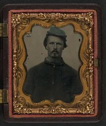 Keywords: library of congress libraryofcongress dc:identifier=http://hdl.loc.gov/loc.pnp/ppmsca.27434 dc:identifier=httphdllocgovlocpnpppmsca27434 xmlns:dc=http://purl.org/dc/elements/1.1/ xmlns:dc=httppurlorgdcelements11 u.s. civil war uscivilwar american civil war americancivilwar the civil war thecivilwar civil war civilwar war between the states warbetweenthestates united states of america unitedstatesofamerica u.s.a. usa the union theunion union the north thenorth yankee yankees soldier picture frame people photo border indoor [Unidentified soldier in Union sack coat and cavalry forage cap] [between 1861 and 1865] 1 photograph : ninth-plate tintype, hand-colored ; 7.7x 6.5 cm (case) Notes: Title devised by Library staff. Case: Berg, no. 3-323. Gift; Tom Liljenquist; 2010; (DLC/PP-2010:105). Subjects: United States.--Army.--People--1860-1870. Soldiers--Union--1860-1870. Military uniforms--Union--1860-1870. United States--History--Civil War, 1861-1865--Military personnel--Union. Format: Portrait photographs--1860-1870. Tintypes--Hand-colored--1860-1870. Rights Info: No known restrictions on publication. Repository: Library of Congress, Prints and Photographs Division, Washington, D.C. 20540 USA, hdl.loc.gov/loc.pnp/pp.print Part Of: Ambrotype/Tintype filing series (Library of Congress) (DLC) 2010650518 Liljenquist Family collection (Library of Congress) (DLC) 2010650519 More information about this collection is available at hdl.loc.gov/loc.pnp/pp.lilj Persistent URL: hdl.loc.gov/loc.pnp/ppmsca.27434 Call Number: AMB/TIN no. 2563 [Unidentified soldier in Union sack coat and cavalry forage cap] [between 1861 and 1865] 1 photograph : ninth-plate tintype, hand-colored ; 7.7x 6.5 cm (case) Notes: Title devised by Library staff. Case: Berg, no. 3-323. Gift; Tom Liljenquist; 2010; (DLC/PP-2010:105). Subjects: United States.--Army.--People--1860-1870. Soldiers--Union--1860-1870. Military uniforms--Union--1860-1870. United States--History--Civil War, 1861-1865--Military personnel--Union. Format: Portrait photographs--1860-1870. Tintypes--Hand-colored--1860-1870. Rights Info: No known restrictions on publication. Repository: Library of Congress, Prints and Photographs Division, Washington, D.C. 20540 USA, hdl.loc.gov/loc.pnp/pp.print Part Of: Ambrotype/Tintype filing series (Library of Congress) (DLC) 2010650518 Liljenquist Family collection (Library of Congress) (DLC) 2010650519 More information about this collection is available at hdl.loc.gov/loc.pnp/pp.lilj Persistent URL: hdl.loc.gov/loc.pnp/ppmsca.27434 Call Number: AMB/TIN no. 2563 |
