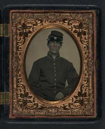 Keywords: library of congress libraryofcongress dc:identifier=http://hdl.loc.gov/loc.pnp/ppmsca.27343 dc:identifier=httphdllocgovlocpnpppmsca27343 xmlns:dc=http://purl.org/dc/elements/1.1/ xmlns:dc=httppurlorgdcelements11 u.s. civil war uscivilwar american civil war americancivilwar the civil war thecivilwar civil war civilwar war between the states warbetweenthestates united states of america unitedstatesofamerica u.s.a. usa the union theunion union the north thenorth yankee yankees soldier photo border picture frame [Unidentified soldier in Union uniform and forage cap] [between 1861 and 1865] 1 photograph : ninth-plate ambrotype, hand-colored ; 7.5 x 6.2 cm (case) Notes: Title devised by Library staff. Case: Berg, no. 3-354. Gift; Tom Liljenquist; 2010; (DLC/PP-2010:105). Subjects: United States.--Army--People--1860-1870. Soldiers--Union--1860-1870. Military uniforms--Union--1860-1870. United States--History--Civil War, 1861-1865--Military personnel--Union. Format: Portrait photographs--1860-1870. Ambrotypes--Hand-colored--1860-1870. Rights Info: No known restrictions on publication. Repository: Library of Congress, Prints and Photographs Division, Washington, D.C. 20540 USA, hdl.loc.gov/loc.pnp/pp.print Part Of: Ambrotype/Tintype filing series (Library of Congress) (DLC) 2010650518 Liljenquist Family collection (Library of Congress) (DLC) 2010650519 More information about this collection is available at hdl.loc.gov/loc.pnp/pp.lilj Persistent URL: hdl.loc.gov/loc.pnp/ppmsca.27343 Call Number: AMB/TIN no. 2480 [Unidentified soldier in Union uniform and forage cap] [between 1861 and 1865] 1 photograph : ninth-plate ambrotype, hand-colored ; 7.5 x 6.2 cm (case) Notes: Title devised by Library staff. Case: Berg, no. 3-354. Gift; Tom Liljenquist; 2010; (DLC/PP-2010:105). Subjects: United States.--Army--People--1860-1870. Soldiers--Union--1860-1870. Military uniforms--Union--1860-1870. United States--History--Civil War, 1861-1865--Military personnel--Union. Format: Portrait photographs--1860-1870. Ambrotypes--Hand-colored--1860-1870. Rights Info: No known restrictions on publication. Repository: Library of Congress, Prints and Photographs Division, Washington, D.C. 20540 USA, hdl.loc.gov/loc.pnp/pp.print Part Of: Ambrotype/Tintype filing series (Library of Congress) (DLC) 2010650518 Liljenquist Family collection (Library of Congress) (DLC) 2010650519 More information about this collection is available at hdl.loc.gov/loc.pnp/pp.lilj Persistent URL: hdl.loc.gov/loc.pnp/ppmsca.27343 Call Number: AMB/TIN no. 2480 |