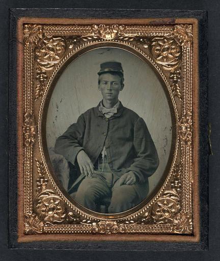 Keywords: library of congress libraryofcongress dc:identifier=http://hdl.loc.gov/loc.pnp/ppmsca.27406 dc:identifier=httphdllocgovlocpnpppmsca27406 xmlns:dc=http://purl.org/dc/elements/1.1/ xmlns:dc=httppurlorgdcelements11 u.s. civil war uscivilwar american civil war americancivilwar the civil war thecivilwar civil war civilwar war between the states warbetweenthestates united states of america unitedstatesofamerica u.s.a. usa the union theunion union the north thenorth yankee yankees soldier people picture frame photo border [Unidentified soldier in Union uniform] [between 1861 and 1865] 1 photograph : ninth-plate ambrotype, hand-colored ; 7.3 x 6.1 cm (case) Notes: Title devised by Library staff. Case: Leather geometric scroll. Gift; Tom Liljenquist; 2010; (DLC/PP-2010:105). Subjects: United States.--Army.--People--1860-1870. Soldiers--Union--1860-1870. Military uniforms--Union--1860-1870. United States--History--Civil War, 1861-1865--Military personnel--Union. Format: Portrait photographs--1860-1870. Ambrotypes--Hand-colored--1860-1870. Rights Info: No known restrictions on publication. Repository: Library of Congress, Prints and Photographs Division, Washington, D.C. 20540 USA, hdl.loc.gov/loc.pnp/pp.print Part Of: Ambrotype/Tintype filing series (Library of Congress) (DLC) 2010650518 Liljenquist Family collection (Library of Congress) (DLC) 2010650519 More information about this collection is available at hdl.loc.gov/loc.pnp/pp.lilj Persistent URL: hdl.loc.gov/loc.pnp/ppmsca.27406 Call Number: AMB/TIN no. 2541 [Unidentified soldier in Union uniform] [between 1861 and 1865] 1 photograph : ninth-plate ambrotype, hand-colored ; 7.3 x 6.1 cm (case) Notes: Title devised by Library staff. Case: Leather geometric scroll. Gift; Tom Liljenquist; 2010; (DLC/PP-2010:105). Subjects: United States.--Army.--People--1860-1870. Soldiers--Union--1860-1870. Military uniforms--Union--1860-1870. United States--History--Civil War, 1861-1865--Military personnel--Union. Format: Portrait photographs--1860-1870. Ambrotypes--Hand-colored--1860-1870. Rights Info: No known restrictions on publication. Repository: Library of Congress, Prints and Photographs Division, Washington, D.C. 20540 USA, hdl.loc.gov/loc.pnp/pp.print Part Of: Ambrotype/Tintype filing series (Library of Congress) (DLC) 2010650518 Liljenquist Family collection (Library of Congress) (DLC) 2010650519 More information about this collection is available at hdl.loc.gov/loc.pnp/pp.lilj Persistent URL: hdl.loc.gov/loc.pnp/ppmsca.27406 Call Number: AMB/TIN no. 2541 |