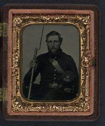 Keywords: library of congress libraryofcongress dc:identifier=http://hdl.loc.gov/loc.pnp/ppmsca.27344 dc:identifier=httphdllocgovlocpnpppmsca27344 xmlns:dc=http://purl.org/dc/elements/1.1/ xmlns:dc=httppurlorgdcelements11 u.s. civil war uscivilwar american civil war americancivilwar the civil war thecivilwar civil war civilwar war between the states warbetweenthestates united states of america unitedstatesofamerica u.s.a. usa the union theunion union the north thenorth yankee yankees soldier gun musket picture frame people indoor photo border [Unidentified soldier in Union uniform and Company K, 137th regiment forage cap with bayoneted musket] [between 1861 and 1865] 1 photograph : ninth-plate tintype, hand-colored ; 7.6 x 6.3 cm (case) Notes: Title devised by Library staff. Case: Berg, no. 3-247. Gift; Tom Liljenquist; 2010; (DLC/PP-2010:105). Subjects: United States.--Army--People--1860-1870. Soldiers--Union--1860-1870. Military uniforms--Union--1860-1870. Rifles--1860-1870. Bayonets--1860-1870. United States--History--Civil War, 1861-1865--Military personnel--Union. Format: Portrait photographs--1860-1870. Tintypes--Hand-colored--1860-1870. Rights Info: No known restrictions on publication. Repository: Library of Congress, Prints and Photographs Division, Washington, D.C. 20540 USA, hdl.loc.gov/loc.pnp/pp.print Part Of: Ambrotype/Tintype filing series (Library of Congress) (DLC) 2010650518 Liljenquist Family collection (Library of Congress) (DLC) 2010650519 More information about this collection is available at hdl.loc.gov/loc.pnp/pp.lilj Persistent URL: hdl.loc.gov/loc.pnp/ppmsca.27344 Call Number: AMB/TIN no. 2481 [Unidentified soldier in Union uniform and Company K, 137th regiment forage cap with bayoneted musket] [between 1861 and 1865] 1 photograph : ninth-plate tintype, hand-colored ; 7.6 x 6.3 cm (case) Notes: Title devised by Library staff. Case: Berg, no. 3-247. Gift; Tom Liljenquist; 2010; (DLC/PP-2010:105). Subjects: United States.--Army--People--1860-1870. Soldiers--Union--1860-1870. Military uniforms--Union--1860-1870. Rifles--1860-1870. Bayonets--1860-1870. United States--History--Civil War, 1861-1865--Military personnel--Union. Format: Portrait photographs--1860-1870. Tintypes--Hand-colored--1860-1870. Rights Info: No known restrictions on publication. Repository: Library of Congress, Prints and Photographs Division, Washington, D.C. 20540 USA, hdl.loc.gov/loc.pnp/pp.print Part Of: Ambrotype/Tintype filing series (Library of Congress) (DLC) 2010650518 Liljenquist Family collection (Library of Congress) (DLC) 2010650519 More information about this collection is available at hdl.loc.gov/loc.pnp/pp.lilj Persistent URL: hdl.loc.gov/loc.pnp/ppmsca.27344 Call Number: AMB/TIN no. 2481 |