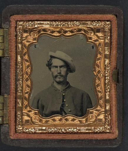 Keywords: library of congress libraryofcongress dc:identifier=http://hdl.loc.gov/loc.pnp/ppmsca.27460 dc:identifier=httphdllocgovlocpnpppmsca27460 xmlns:dc=http://purl.org/dc/elements/1.1/ xmlns:dc=httppurlorgdcelements11 u.s. civil war uscivilwar american civil war americancivilwar the civil war thecivilwar civil war civilwar war between the states warbetweenthestates united states of america unitedstatesofamerica u.s.a. usa the union theunion union the north thenorth yankee yankees soldier picture frame people photo border [Unidentified soldier in Union uniform and slouch hat] [between 1861 and 1865] 1 photograph : sixteenth-plate tintype, hand-colored ; 5.3 x 4.5 cm (case) Notes: Title devised by Library staff. Case: Berg, no. 3-483. Additional information in collections file. Gift; Tom Liljenquist; 2010; (DLC/PP-2010:105). Purchased from: Cayuga Lake Antiques, Interlaken, N.Y. Subjects: United States.--Army.--People--1860-1870. Soldiers--Union--1860-1870. Military uniforms--Union--1860-1870. United States--History--Civil War, 1861-1865--Military personnel--Union. Format: Portrait photographs--1860-1870. Tintypes--Hand-colored--1860-1870. Rights Info: No known restrictions on publication. Repository: Library of Congress, Prints and Photographs Division, Washington, D.C. 20540 USA, hdl.loc.gov/loc.pnp/pp.print Part Of: Ambrotype/Tintype filing series (Library of Congress) (DLC) 2010650518 Liljenquist Family collection (Library of Congress) (DLC) 2010650519 More information about this collection is available at hdl.loc.gov/loc.pnp/pp.lilj Persistent URL: hdl.loc.gov/loc.pnp/ppmsca.27460 Call Number: AMB/TIN no. 2587 [Unidentified soldier in Union uniform and slouch hat] [between 1861 and 1865] 1 photograph : sixteenth-plate tintype, hand-colored ; 5.3 x 4.5 cm (case) Notes: Title devised by Library staff. Case: Berg, no. 3-483. Additional information in collections file. Gift; Tom Liljenquist; 2010; (DLC/PP-2010:105). Purchased from: Cayuga Lake Antiques, Interlaken, N.Y. Subjects: United States.--Army.--People--1860-1870. Soldiers--Union--1860-1870. Military uniforms--Union--1860-1870. United States--History--Civil War, 1861-1865--Military personnel--Union. Format: Portrait photographs--1860-1870. Tintypes--Hand-colored--1860-1870. Rights Info: No known restrictions on publication. Repository: Library of Congress, Prints and Photographs Division, Washington, D.C. 20540 USA, hdl.loc.gov/loc.pnp/pp.print Part Of: Ambrotype/Tintype filing series (Library of Congress) (DLC) 2010650518 Liljenquist Family collection (Library of Congress) (DLC) 2010650519 More information about this collection is available at hdl.loc.gov/loc.pnp/pp.lilj Persistent URL: hdl.loc.gov/loc.pnp/ppmsca.27460 Call Number: AMB/TIN no. 2587 |