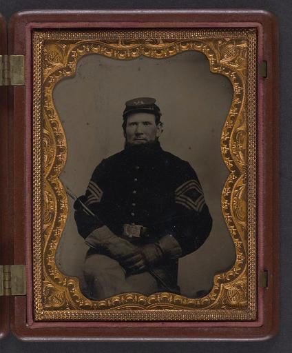 Keywords: library of congress libraryofcongress dc:identifier=http://hdl.loc.gov/loc.pnp/ppmsca.27144 dc:identifier=httphdllocgovlocpnpppmsca27144 xmlns:dc=http://purl.org/dc/elements/1.1/ xmlns:dc=httppurlorgdcelements11 u.s. civil war uscivilwar american civil war americancivilwar the civil war thecivilwar civil war civilwar war between the states warbetweenthestates united states of america unitedstatesofamerica u.s.a. usa the union theunion union the north thenorth yankee yankees soldier sergeant non-commission officer noncommissionofficer nco gauntlet gauntlets picture frame people indoor photo border [Unidentified Union sargeant major's uniform with gauntlets and forage cap of the 206th Pennsylvania Volunteers Regiment] [between 1864 and 1865] 1 photograph : quarter-plate tintype; 12.5 x 10.2 cm (case) Notes: Title devised by Library staff. Case: Berg, no. 3-25. Gift; Tom Liljenquist; 2010; (DLC/PP-2010:105). Subjects: United States.--Army.--Pennsylvania Infantry Regiment, 206th (1864-1865)--People. Soldiers--Union--1860-1870. Military uniforms--Union--1860-1870. United States--History--Civil War, 1861-1865--Military personnel--Union. Format: Portrait photographs--1860-1870. Tintypes--1860-1870. Rights Info: No known restrictions on publication. Repository: Library of Congress, Prints and Photographs Division, Washington, D.C. 20540 USA, hdl.loc.gov/loc.pnp/pp.print Part Of: Ambrotype/Tintype filing series (Library of Congress) (DLC) 2010650518 Liljenquist Family collection (Library of Congress) (DLC) 2010650519 More information about this collection is available at hdl.loc.gov/loc.pnp/pp.lilj Persistent URL: hdl.loc.gov/loc.pnp/ppmsca.27144 Call Number: AMB/TIN no. 2291 [Unidentified Union sargeant major's uniform with gauntlets and forage cap of the 206th Pennsylvania Volunteers Regiment] [between 1864 and 1865] 1 photograph : quarter-plate tintype; 12.5 x 10.2 cm (case) Notes: Title devised by Library staff. Case: Berg, no. 3-25. Gift; Tom Liljenquist; 2010; (DLC/PP-2010:105). Subjects: United States.--Army.--Pennsylvania Infantry Regiment, 206th (1864-1865)--People. Soldiers--Union--1860-1870. Military uniforms--Union--1860-1870. United States--History--Civil War, 1861-1865--Military personnel--Union. Format: Portrait photographs--1860-1870. Tintypes--1860-1870. Rights Info: No known restrictions on publication. Repository: Library of Congress, Prints and Photographs Division, Washington, D.C. 20540 USA, hdl.loc.gov/loc.pnp/pp.print Part Of: Ambrotype/Tintype filing series (Library of Congress) (DLC) 2010650518 Liljenquist Family collection (Library of Congress) (DLC) 2010650519 More information about this collection is available at hdl.loc.gov/loc.pnp/pp.lilj Persistent URL: hdl.loc.gov/loc.pnp/ppmsca.27144 Call Number: AMB/TIN no. 2291 |