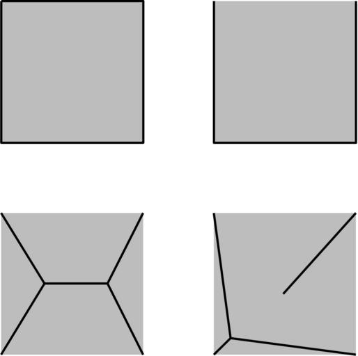 | Keywords: Unit Square Opaque Forest Solutions.svg opaque forests for a unit square Top left the perimeter of the square length 4 Top right The perimeter of the square less one edge length 3 Bottom left the steiner tree of the vertices length 1 + ˆš3 Bottom right the conjectured optimal solution length ˆš2 + ˆš6/2 sr-ec Ð ÐµÐ¿Ñ Ð¾Ð·Ð¸Ñ Ð½Ðµ шуме коцке own Alexis Beingessner 2012-11-22 cc-zero User Gankro Original upload log en wikipedia ftcg page en wikipedia Unit_Square_Opaque_Forest_Solutions svg wikitable - 22 21 22 November 2013 405 × 404 3 300 bytes Gankro w en <nowiki> Summary opaque forests for a unit square own Alexis Beingessner 2012-11-22 Computational Geometry</nowiki> Computational geometry |