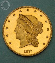 | Keywords: legendary coins legendarycoins numismatics money smithsonian probably public domain probablypublicdomain indoor round circle ancient  SI Neg. 2005-27356. Date: 9/1/2005...Patterns and experimental pieces form one of the most interesting groups of specimens associated with official coinage. It was customary for the Mint to provide samples of a proposed coin. More patterns were made in 1877 than in any other year. The Gold Rush in California prompted the merchants and bankers in San Francisco to lobby Congress for gold pieces of high denomination for quick counting purposes when a branch mint was established in their city in 1854. The design for the proposed large coin was similar to the $20 double eagle. Senator William Gwin of California introduced a bill for the adoption of this coin. His bill passed the Senate but failed to win approval in the House of Representatives. Although the coin was not approved, the proposal for such a large coin was feasible only after enough of the precious metal was available with the discovery of vast quantities in California. The depiction of Liberty on the obverse was a familiar symbol of national identity by 1877 for Americans..Click here to view the obverse...Credit: Tom Mulvaney (Smithsonian Institution)   SI Neg. 2005-27356. Date: 9/1/2005...Patterns and experimental pieces form one of the most interesting groups of specimens associated with official coinage. It was customary for the Mint to provide samples of a proposed coin. More patterns were made in 1877 than in any other year. The Gold Rush in California prompted the merchants and bankers in San Francisco to lobby Congress for gold pieces of high denomination for quick counting purposes when a branch mint was established in their city in 1854. The design for the proposed large coin was similar to the $20 double eagle. Senator William Gwin of California introduced a bill for the adoption of this coin. His bill passed the Senate but failed to win approval in the House of Representatives. Although the coin was not approved, the proposal for such a large coin was feasible only after enough of the precious metal was available with the discovery of vast quantities in California. The depiction of Liberty on the obverse was a familiar symbol of national identity by 1877 for Americans..Click here to view the obverse...Credit: Tom Mulvaney (Smithsonian Institution) |