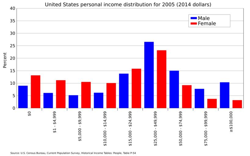 | Keywords: United States personal income by sex in todays dollars-2005.svg translate yes en Distribution of personal income by sex in the United States in 2005 in 2014 dollars Source U S Census Bureau Current Population Survey Historical Income Tables People https //www census gov/hhes/www/income/data/historical/people/2014/p54 xls Table P-54 2016-03-23 own Delphi234 other versions cc-zero Income distribution in the United States Personal income in the United States | ||||