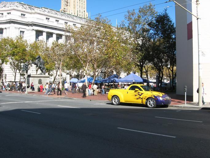 | Keywords: UnitedNationsPlazaWithACustomizedChevySSRAndABunchOfFarmersMarkets.jpg United Nations Plaza It is a Sunday because there are tents and people purchasing food from the Farmers' Markets Own 2007-10-21 Goodshoped35110s National Historic Landmarks in California Civic Center San Francisco |