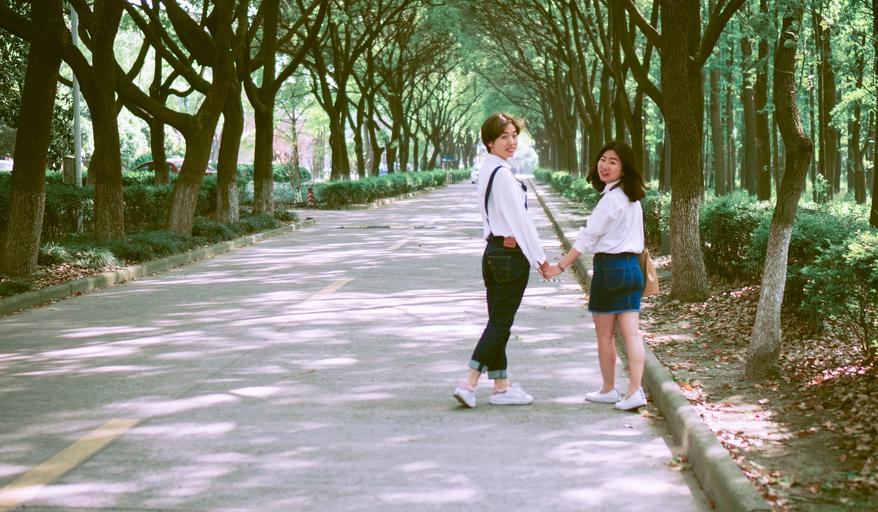 Keywords: university campus the self-timer school girls jeans sisters beauty student