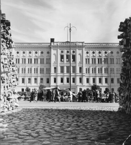 | Keywords: blackandwhite monochrome outdoor building architecture black and white Teknillisen korkeakoulun päärakennus, Hietalahdentori. Päärakennus torin suunnalta katsottuna, edustalla torikauppiaita ja kojuja. Kuvan molemmin puolin sivuilla halkopinoja. Arkkitehti / Architect: F.A. Sjöström 1872, extension K.G. Nyström 1904, extension Armas Lindgren 1927 TKKKA Aalto-yliopisto / Aalto University Tiedätkö lisää tästä kuvasta? Jätä kommentti tai ota yhteyttä sähköpostitse: raami@aalto.fi Lisätietoja kuvakokoelmista / more information: lib.aalto.fi/en/materials/images/ Teknillisen korkeakoulun päärakennus, Hietalahdentori. Päärakennus torin suunnalta katsottuna, edustalla torikauppiaita ja kojuja. Kuvan molemmin puolin sivuilla halkopinoja. Arkkitehti / Architect: F.A. Sjöström 1872, extension K.G. Nyström 1904, extension Armas Lindgren 1927 TKKKA Aalto-yliopisto / Aalto University Tiedätkö lisää tästä kuvasta? Jätä kommentti tai ota yhteyttä sähköpostitse: raami@aalto.fi Lisätietoja kuvakokoelmista / more information: lib.aalto.fi/en/materials/images/ |