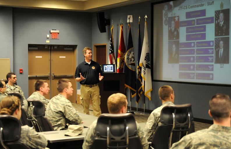 MAKE A MEME View Large Image University of Tennessee Air Force ROTC cadets recieve Joint Task Force Civil Support mission brief 140320-N-VJ282-383.jpg en Rick George joint communication control center chief Joint Task Force Civil Support discusses the unit mission to ...