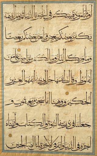 | Keywords: Unknown, Central Asia, 15th Century - Page from Colossal Qur'an - Google Art Project.jpg Central Asia 15th Century 1909671 Unknown Central Asia /collection/the-museum-of-islamic-art-qatar/artwork/page-from-colossal-quran-unknown-central-asia-15th-century/808557/ Unknown Central Asia 15th Century /collection/the-museum-of-islamic-art-qatar/ The Museum of Islamic Art Qatar 681934 http //www mia org qa/ 2/16/2012 10 17 30 PM /collection/the-museum-of-islamic-art-qatar/artwork/page-from-colossal-quran-unknown-central-asia-15th-century/808557/ 1400 True 1770 808557 True 1500 /collection/the-museum-of-islamic-art-qatar/level/floor-2-2/887775/ Floor 2 / الطابق 2 5/28/2012 3 06 43 PM MS 119 2007 http //www mia org qa/ Manuscript 1400 1510 h1770 cm 1400 - 1500 False 0 62109375 Object /collection/the-museum-of-islamic-art-qatar/level/floor-2-2/887775/gallery-2/805578/ Gallery 2 page-from-colossal-quran-unknown-central-asia-15th-century Page from Colossal Qur'an p 101 cm special url_id 5QGTDxur_VosRg PD-old-100 Google Art Project works by unknown artist Central Asia Qur'an manuscripts 15th century Doha Museum of Islamic Art |