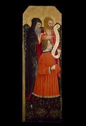 Keywords: Unknown Italian - Saints Anthony Abbot and John the Baptist with a Donor - Google Art Project.jpg commons date commons medium commons dimensions commons institution Institution Museum of Fine Arts Houston commons location commons references commons object_history commons exhibition_history commons credit_line commons inscriptions commons notes commons accession_number commons source commons permission commons other_versions commons zoom core title Saints Anthony Abbot and John the Baptist with a Donor core creator Unknown Italian core date dateCreated 1483/1487 core format w57 2 x h163 8 cm overall core type Painting core rights The Museum of Fine Arts Houston The Samuel H Kress Collection core relation MFAH core format medium Tempera and gold leaf on wood c-08498e6a customtext medium_extent entire c-08498e6a customtext medium_source MFAH google display_date 1483/1487 google is_artproject TRUE google is_gigapixel FALSE google is_secured TRUE google partner/id 0000000008498e6a google picasa_token KRSVmUpRQZeT1AFu1arV3ATBKjg special url_id _gHs3_yHG8QywA google partner/name The Museum of Fine Arts Houston special partner/name_no_lang The Museum of Fine Arts Houston PD-old-100-1923 Google Art Project works by unknown artist Italy Religious paintings in the Museum of Fine Arts Houston Portraits with patron saints |