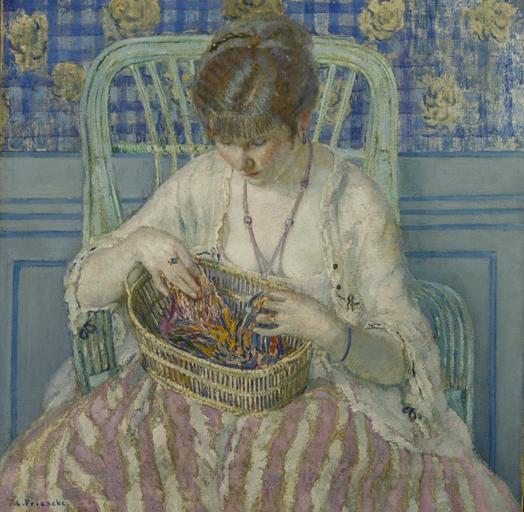 Keywords: Unraveling Silk, Frieseke.jpg Unraveling Silk oil on canvas 81 9 x 82 2 cm Terra Foundation for American Art http //collections terraamericanart org/view/objects/asitem/search 0040/4/dateBegin-asc/alphaSort-asc t state flow a6c282b7-1be1-4bea-a856-3003650b2474 ~ 1915 Creator Frederick Carl Frieseke PD-old Frederick Carl Frieseke |