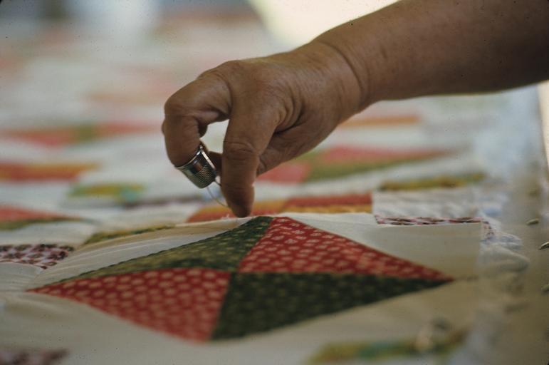 Keywords: smithsonian institution smithsonianinstitution quilt hand thimble sewing american folklife festival craft mid-20th century mid20thcentury 1968 color fabric piecing fabricpiecing quilt making quiltmaking quilting center for folklife and cultural heritage centerforfolklifeandculturalheritage Description: A participant works on a quilt at the 1968 Festival of American Folklife held on the National Mall, Washington, D.C. Creator/Photographer: Unidentified photographer Medium: Medium unknown Culture: American Geography: USA Date: 1968 Repository: Center for Folklife and Cultural Heritage/Ralph Rinzler Folklife Archives and Collections Accession number: FAF1968_quilter_023 Description: A participant works on a quilt at the 1968 Festival of American Folklife held on the National Mall, Washington, D.C. Creator/Photographer: Unidentified photographer Medium: Medium unknown Culture: American Geography: USA Date: 1968 Repository: Center for Folklife and Cultural Heritage/Ralph Rinzler Folklife Archives and Collections Accession number: FAF1968_quilter_023