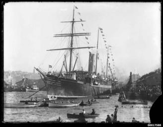 | Keywords: boats boat australia boerwar harbor harbour harbourscenes sydney sydneyharbor sydneyharbour war wartime moravian woolloomooloo vintagephotograph blackandwhite monochrome photo border outdoor vehicle black and white Photographer unknown. Sydney, NSW, Australia. Glass plate negative of the vessel MORAVIAN, probably departing for the Boer War from Woolloomooloo. The vessel is seen moored along a wharf with people visible on deck, on land and in the surrounding waters in boats. MORAVIAN is seen from the port side and stern and has one main funnel and three masts with signal flags and also is flying a White Star Line flag. The ANMM undertakes research and accepts public comments that enhance the information we hold about images in our collection. Object no. 00017588 Part of the Peter Britz memorial collection. Photographer unknown. Sydney, NSW, Australia. Glass plate negative of the vessel MORAVIAN, probably departing for the Boer War from Woolloomooloo. The vessel is seen moored along a wharf with people visible on deck, on land and in the surrounding waters in boats. MORAVIAN is seen from the port side and stern and has one main funnel and three masts with signal flags and also is flying a White Star Line flag. The ANMM undertakes research and accepts public comments that enhance the information we hold about images in our collection. Object no. 00017588 Part of the Peter Britz memorial collection. |