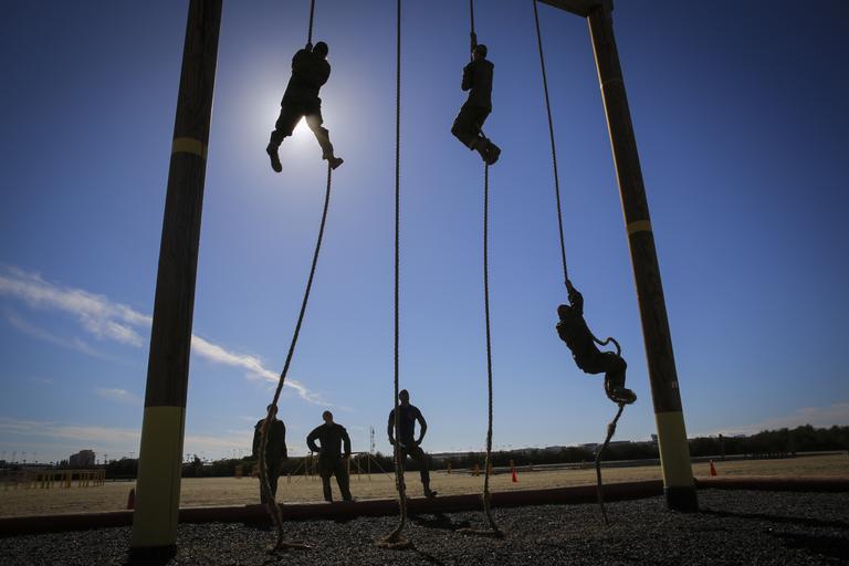 | Keywords: Up the Rope (15316926734).jpg Recruits of Lima Company 3rd Recruit Training Battalion make their way up the last obstacle the 20-foot rope climb during the Obstacle Course II event aboard Marine Corps Recruit Depot San Diego Nov 20 When recruits reached the top of the rope they had to slap the wood beam that the rope is attached to and scream their name platoon number and senior drill instructor's name which indicated the completion of the course U S Marine Corps photo by Sgt Benjamin E Woodle/ Released https //www flickr com/photos/marine_corps/15316926734/ Up the Rope 2014-11-20 13 56 https //www flickr com/people/40927340 N03 Marines from Arlington VA United States PD-USGov United States Marine Corps Official Page https //flickr com/photos/40927340 N03/15316926734 2016-09-03 21 50 33 United States Government Work Uncategorized 2016 November 7 |